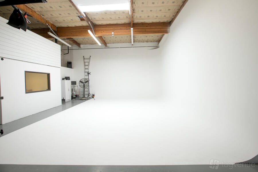 Skylight Studios is the largest cyclorama studio in central San Diego! Our space is perfect for photo and video shoots. We have a skylight in our space, and a roll-up garage door that provides lovely natural light for your shoot, but lighting can be easily controlled by closing these elements and utilizing our blackout curtains.
