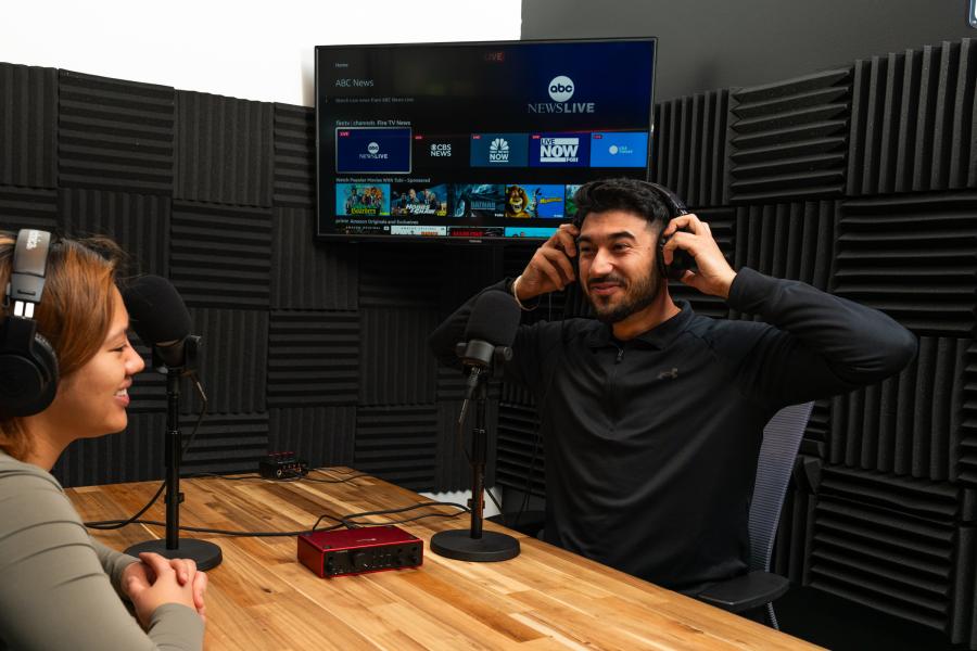 - Podcast Room/Audio Studio hosting 2 guests: $80