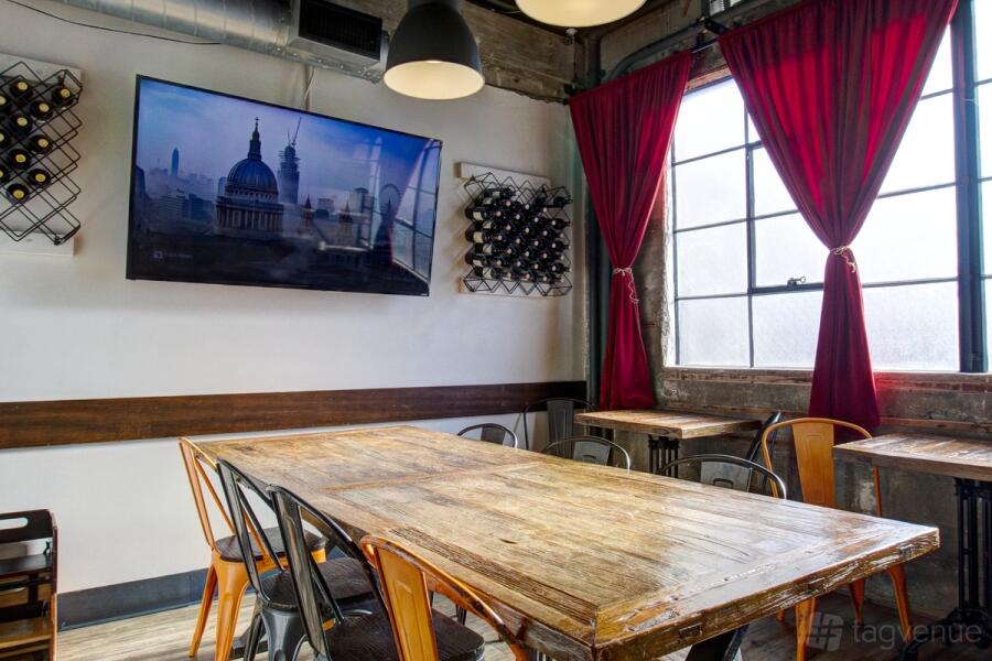 Whatever the occasion, let us welcome you with a bite of interesting to your day. Your guests will devour delicious food and leave with amazing memories of your event. With 60" HD flatscreens, high ceilings and many other details, there's more than what just meets the eyes. We can accommodate up to 149 people seated.