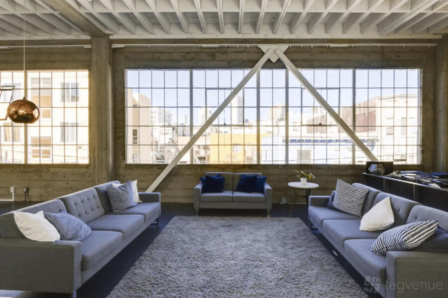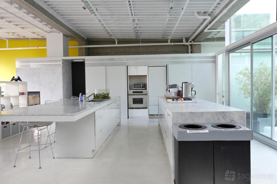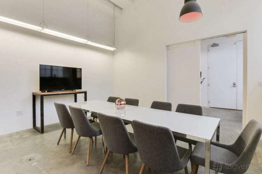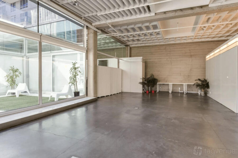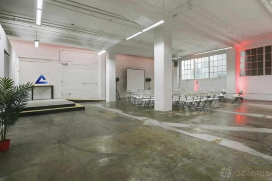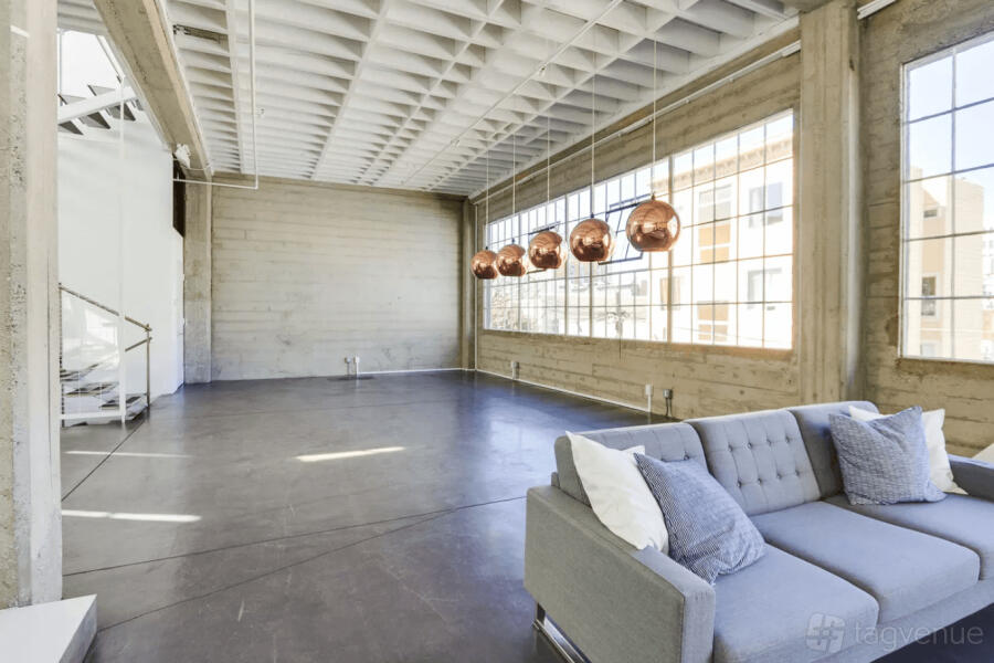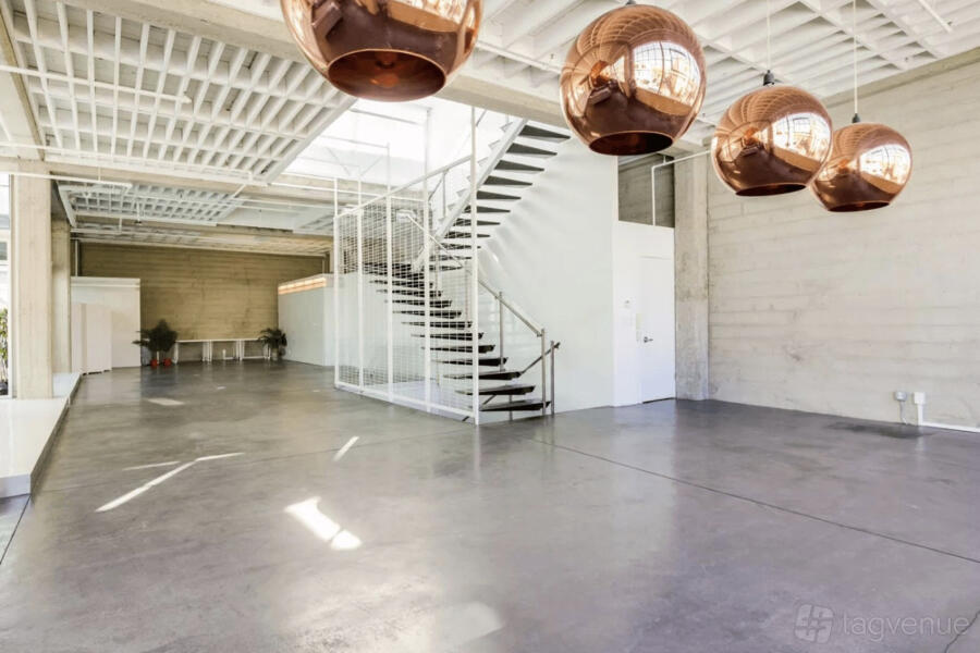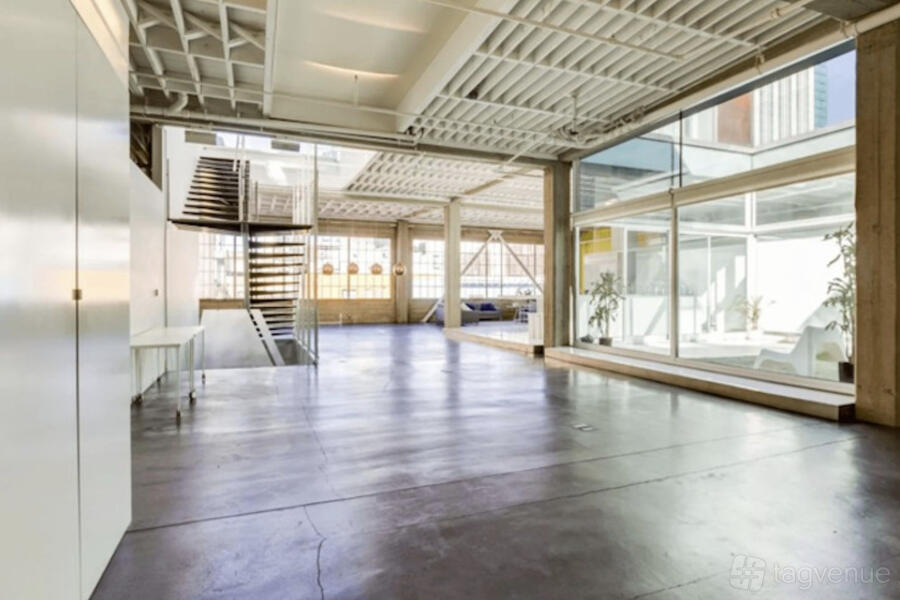 Your rental is on the first floor. The space is a flexible industrial space transformed with whitewashed walls and streamlined modern decor. This space is perfect for various uses, including conferences, product demos, filming, or photography locations.
