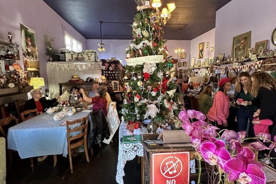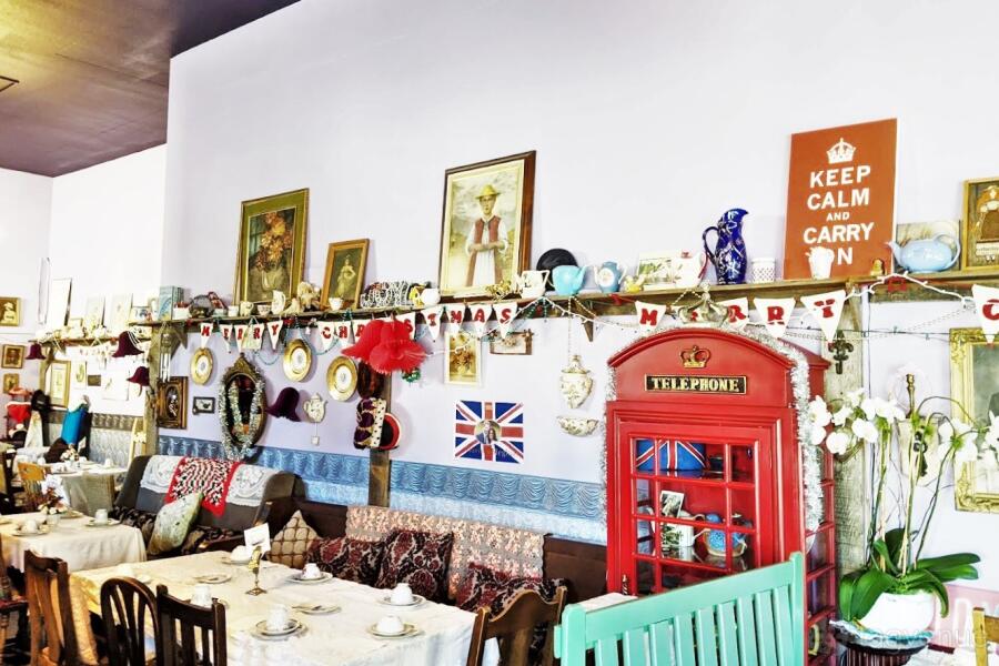 A place where handmade tea cozies, broken china mosaics, and an eclectic assortment of collectibles will delight your eyes.
