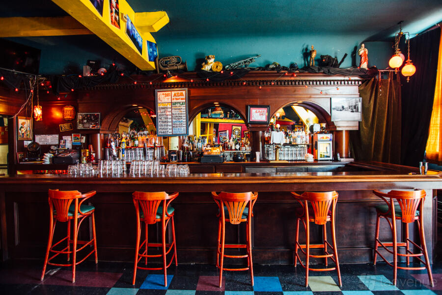 As you step into this hallowed space, you'll be greeted by the allure of a large antique bar, a timeless centerpiece that sets the tone for the venue's historic charm. The bar, fully stocked and staffed, serves as the epicenter of social convergence, offering a range of libations to complement the auditory feast. Adjacent to the bar, a kitchen awaits, serving up delectable hot food to satisfy cravings and fuel the night's revelry.
