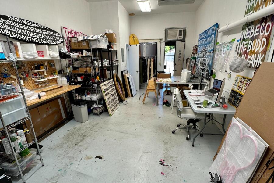 Additionally, there is a working studio located in the back of the gallery, which is convenient for storing equipment or hiding items you don't want in your shot. This extra space ensures that your production stays organized and clutter-free.