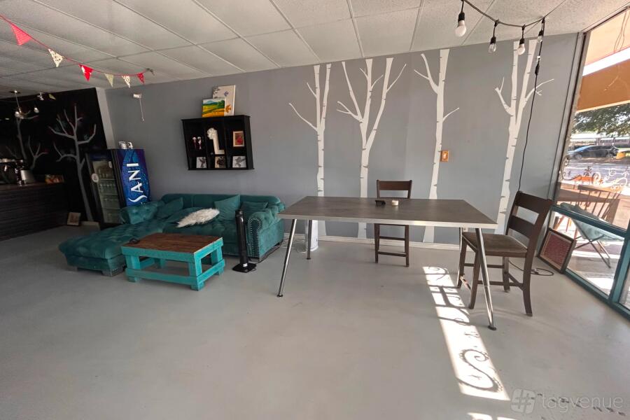 The venue has one space available for private hire. It can accommodate up to 60 people. The interior is cozy with a comfortable couch, tables, an armchair, and a TV. It will be a match for birthdays, baby showers, meetings with friends, and more!