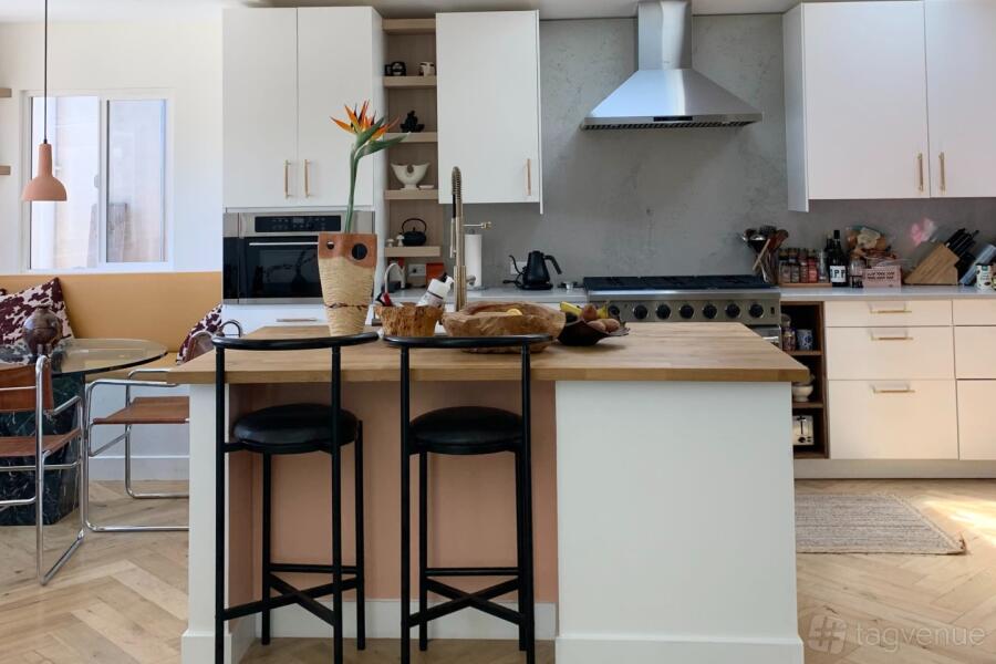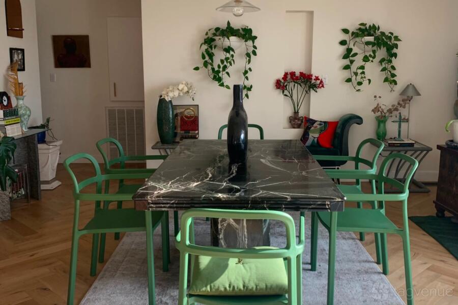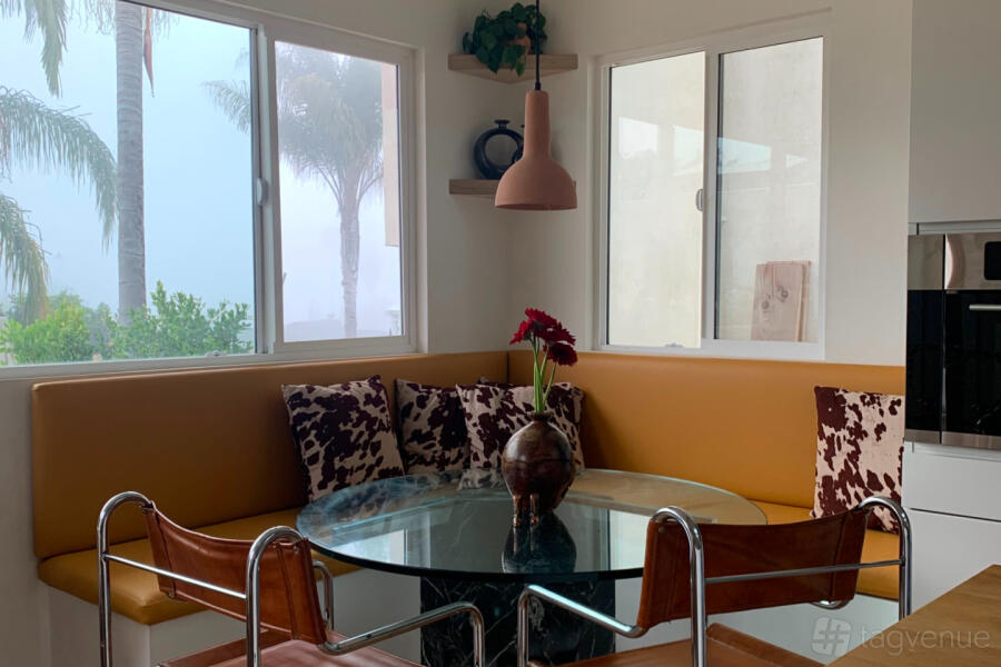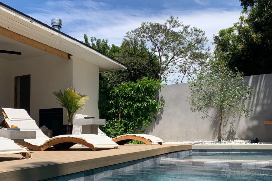 The home is perfect for creative projects, boasting a saltwater pool, an outdoor kitchen, a cozy cabana, and a dining area. Fully furnished with vintage furniture, it offers both style and comfort. The home’s peaceful ambiance and proximity to LA’s diverse culture make it an ideal retreat for your next project.