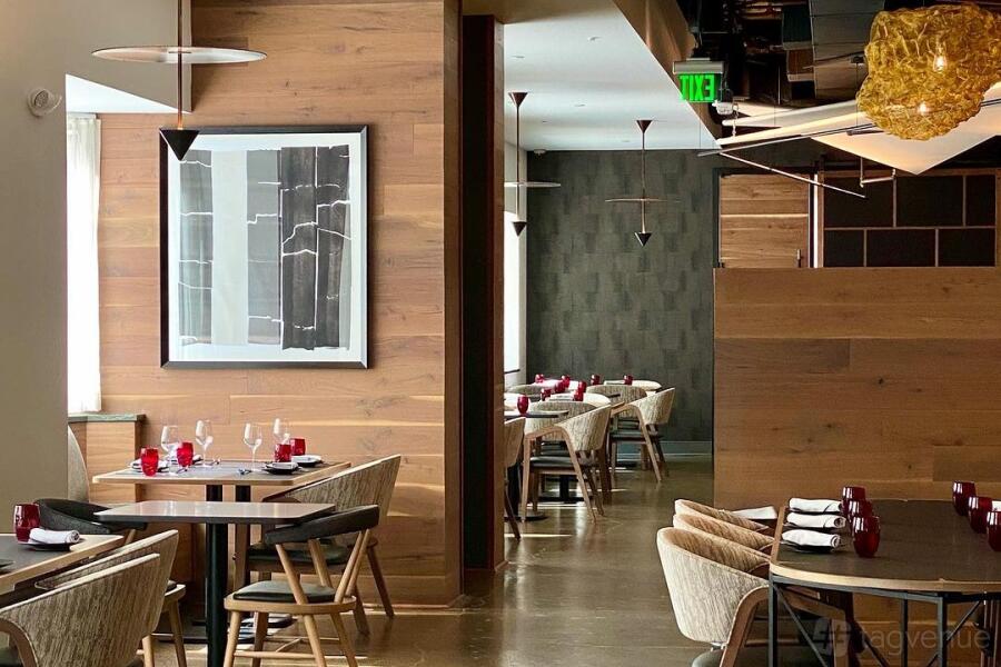 Spanning 12,000 square feet, the restaurant's design is as striking as its cuisine. Featuring a stunning bar, expansive sake lounge, raised dining area, open kitchen, and private dining room, the space is both modern and inviting. Bright polished metals juxtapose thoughtfully placed wood elements against dark textures and dramatic lighting, creating an ambiance that reflects Chef Pepe's fusion of Spanish and Japanese influences.