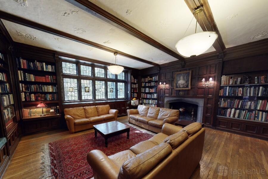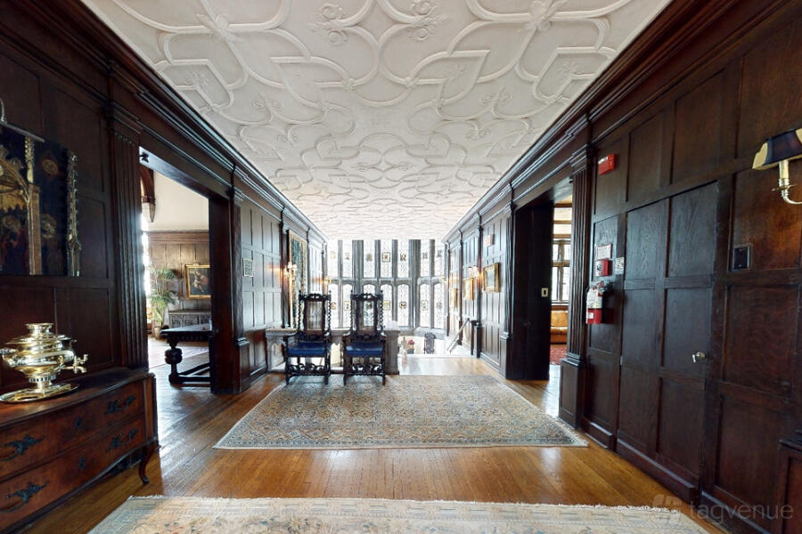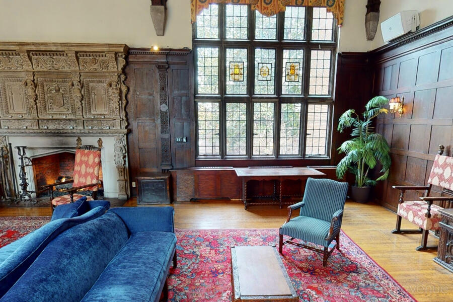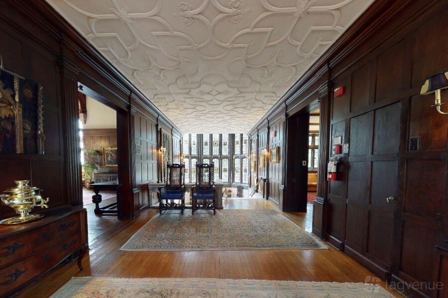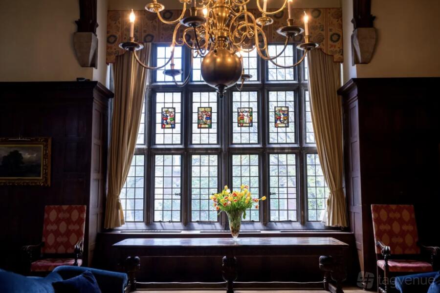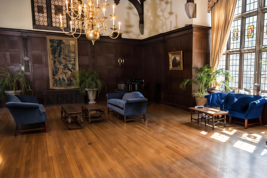 The Great Hall features a vaulted ceiling and antique decor, ideal for formal events, accommodating up to 120 guests. This venue combines historic charm with versatile spaces, making it perfect for memorable gatherings.