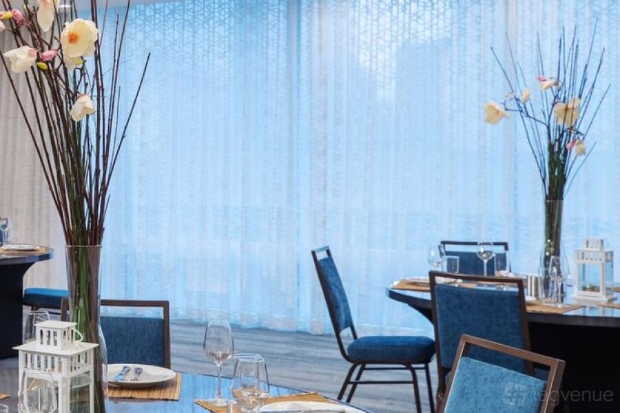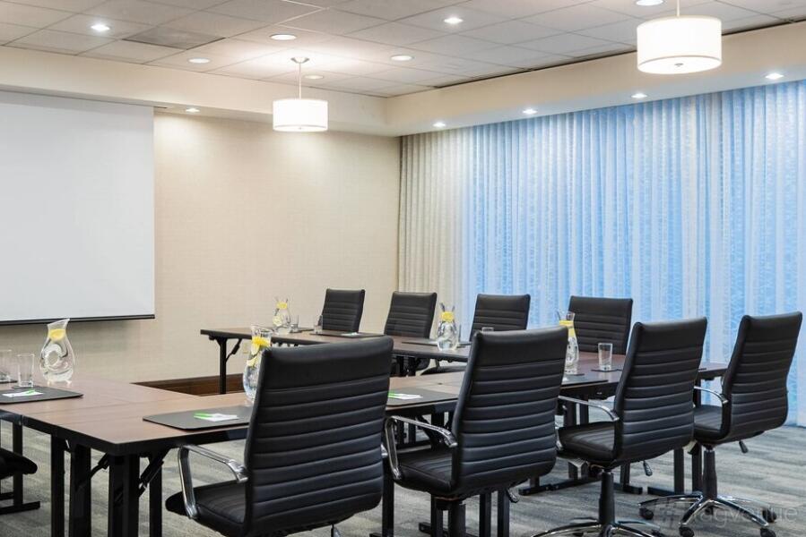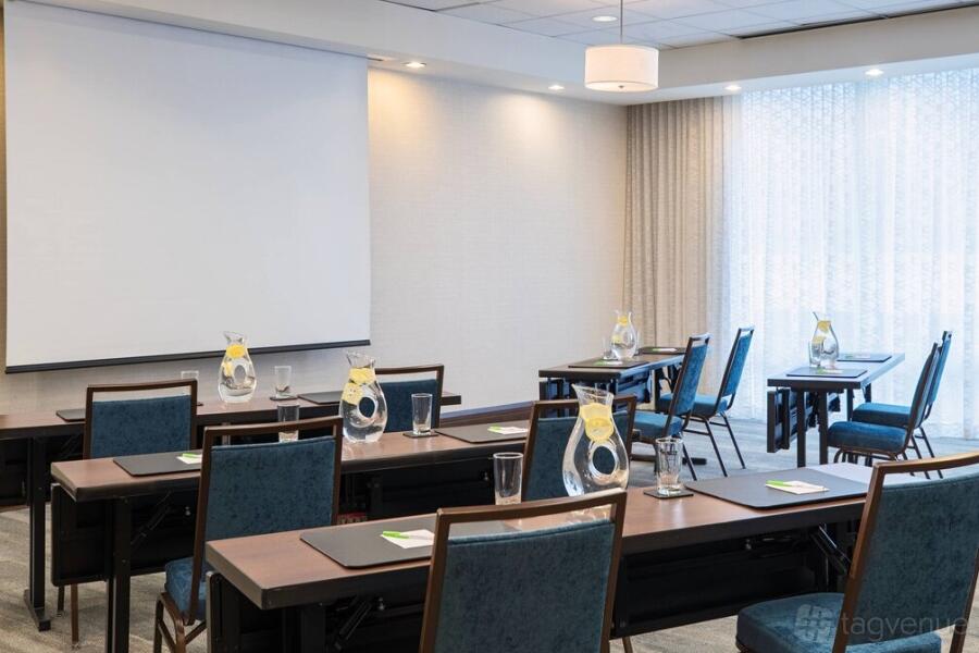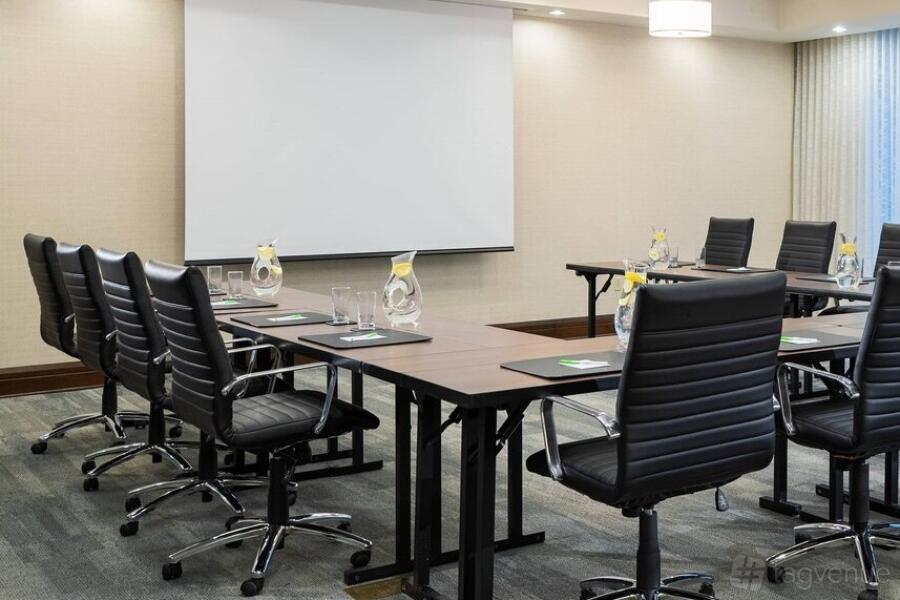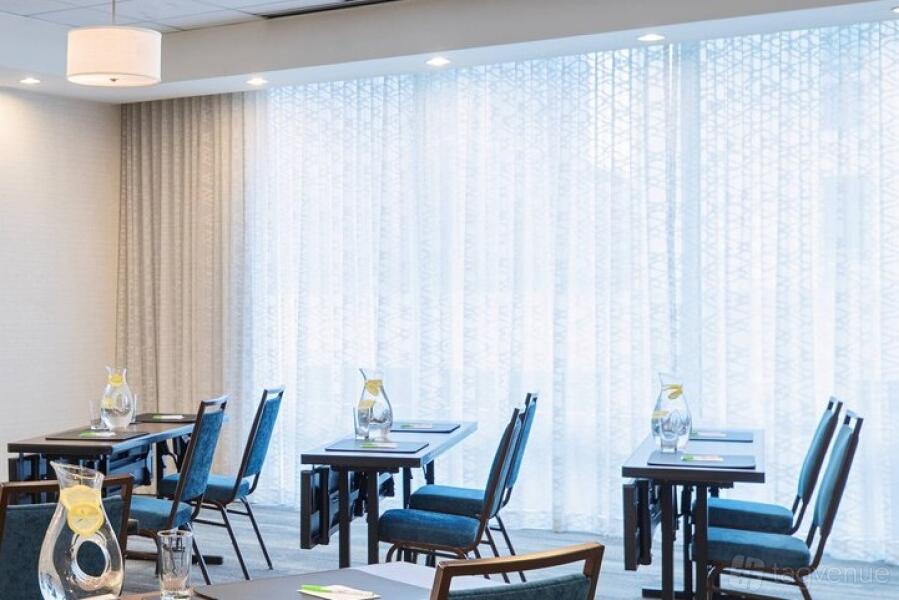 The venue features four distinct rooms, each space equipped with state-of-the-art AV technology, ergonomic seating, and ample natural light, making them ideal for meetings, training sessions, banquets, or intimate gatherings. Guests also benefit from amenities like high-speed WiFi, a business center, and breakout lounge areas with plush seating and stylish decor. For casual dining or refreshments, the on-site bar and bistro provide convenient options, while the chic lobby offers a welcoming space for networking or relaxation.