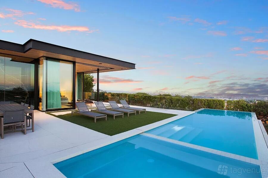 The venue includes ample parking for up to six vehicles and an array of top-tier amenities. Its private pool and spacious outdoor areas make it the perfect backdrop for weddings, upscale parties, or exclusive retreats. The estate’s two stories feature floor-to-ceiling windows that flood the space with natural light, allowing guests to enjoy panoramic views of the ocean and hills. Conveniently located in Los Angeles, this luxurious venue offers an unparalleled combination of privacy, elegance, and modern luxury for your next event. Exact address upon booking.