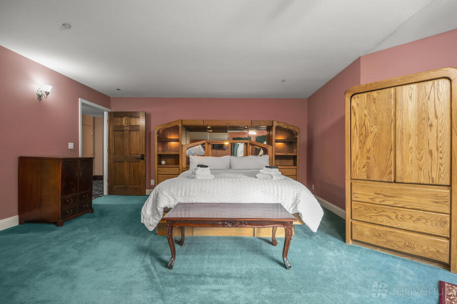Entertainment options at Wrightwood Castle are wide-ranging. Guests can relax in the high-tech spa/hot tub, enjoy the retro arcade room with vintage games, or stay active in the on-site gym. The library and bar area provide additional spaces for relaxation and socializing, making it easy to cater to diverse interests and preferences.