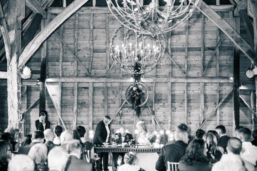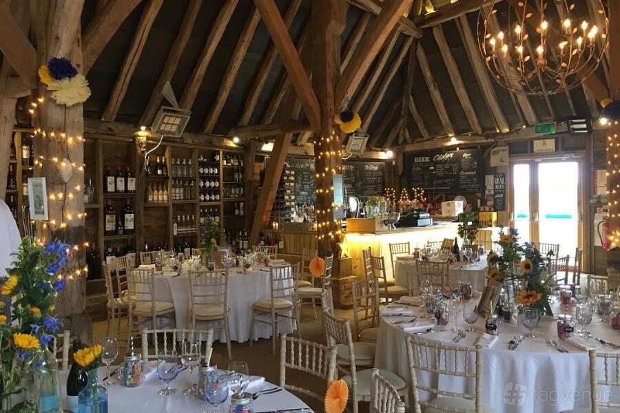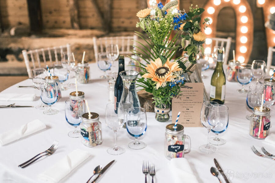 The venue is licensed for civil ceremonies and partnerships inside the barn. The team works with preferred caterers who create bespoke menus to suit any budget. Guests can enjoy drinks from the fully stocked on-site bar or bring their own alcohol (corkage fees apply).