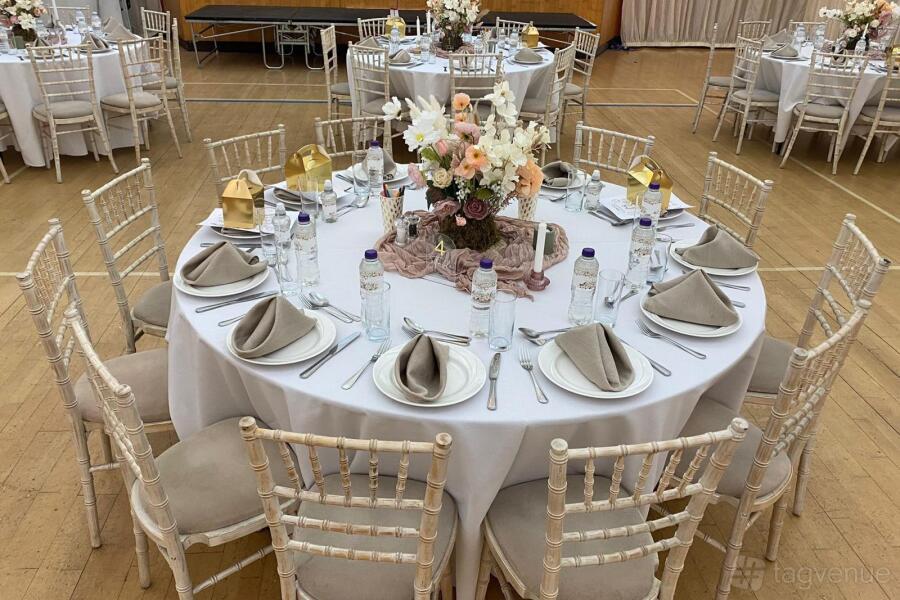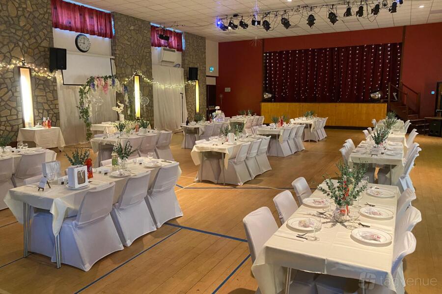 The venue is ideal for receptions, dinner dances, stage shows, and social gatherings. Its adjoining playing field offers an outdoor tennis court, cricket and football pitches, a children's play area, and sports changing facilities.