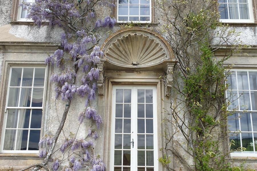 Hamswell House as it stands today is the 16th century with 17th and 18th-century remodelling. The early Jacobean façade with its elaborate carved stone portico is a fine example of the English Renaissance. The garden façade is Queen Anne with a stone shell hood on brackets carved with acanthus leaves and beasts above the door.