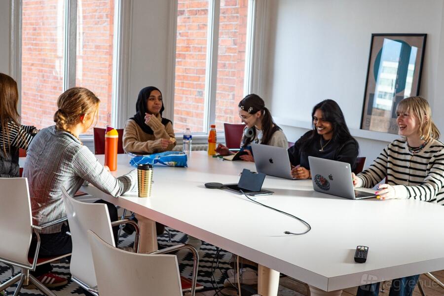 We have three spaces: Lower McKewan for focused 6-person meetings, Upper Robinson for relaxed 12-person discussions, and The Press Room for gatherings of up to 40 people.