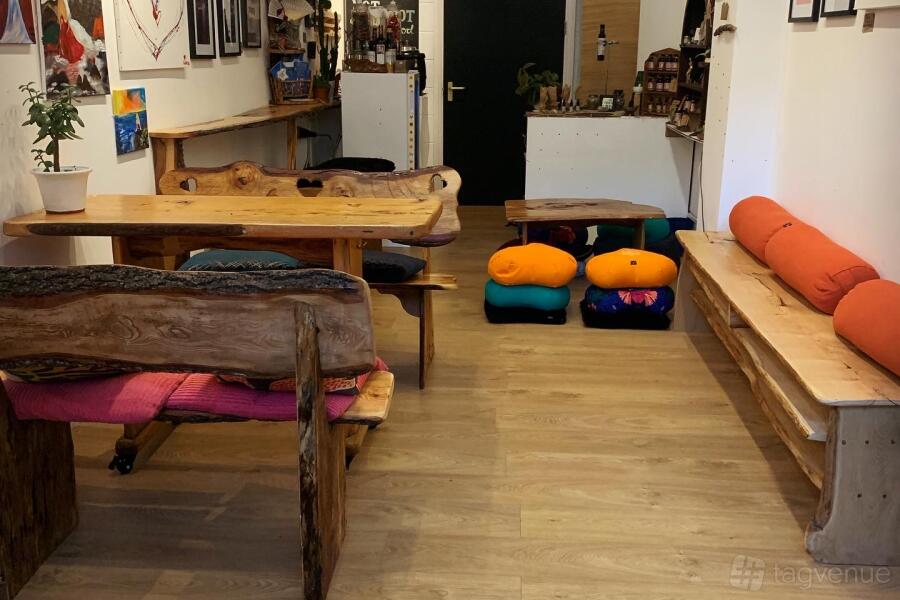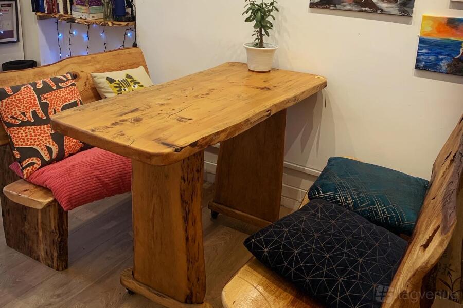 Otherwise make use of the bespoke wooden furniture made by our Brighton craftsman. The space is suitable for up to 16 people with cushions/benches/chairs.