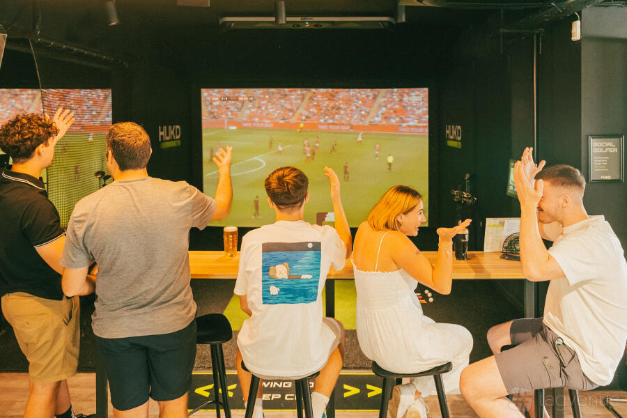 Play over 200 world-class courses on state-of-the-art Trackman simulators, challenge your friends to a round of crazy golf, or just kick back with great food and drinks from our full bar. Rain or shine, it’s always the perfect time to play at HUKD Golf.