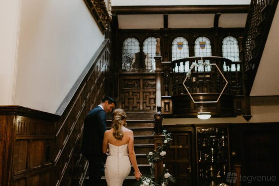 The beautiful grounds, with a pond and fountain, a romantic pergola walk, stone statues, and landscaped gardens, are the perfect setting for photographs. And when the weather is not so kind, there are beautiful backdrops, including carved staircases, for photographs in the mansion.