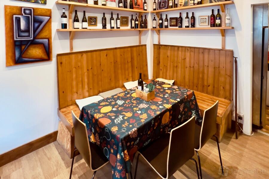 The decor at Hungry Wolf is warm and modern, with simple wooden tables and cozy lighting that makes the space feel welcoming. It’s a great place to host events because it has a friendly atmosphere and comfortable seating.