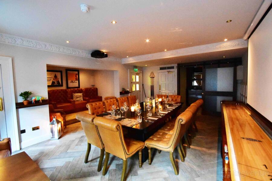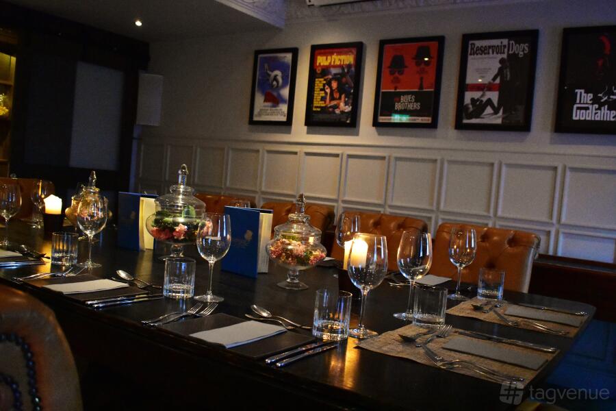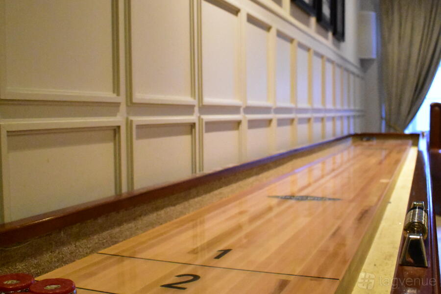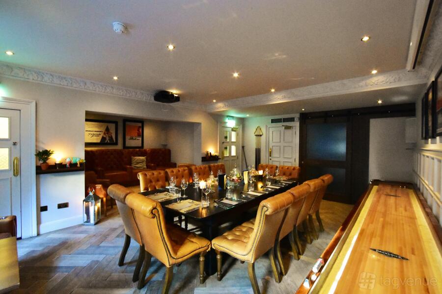 Toad Hall is a private dining room for 12 seated or 25 standing guests. Right beneath the main bar, it features a cinema screen, shuffleboard, and a pool table. Customise the atmosphere with your own playlist on the surround sound system.