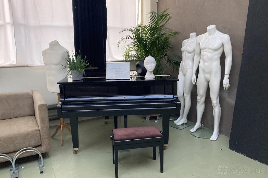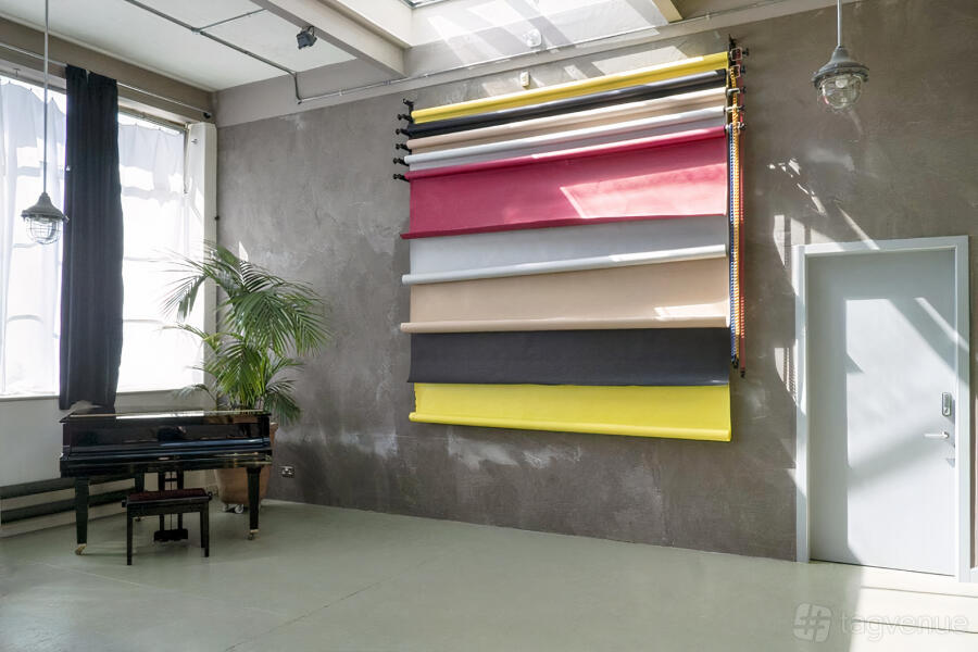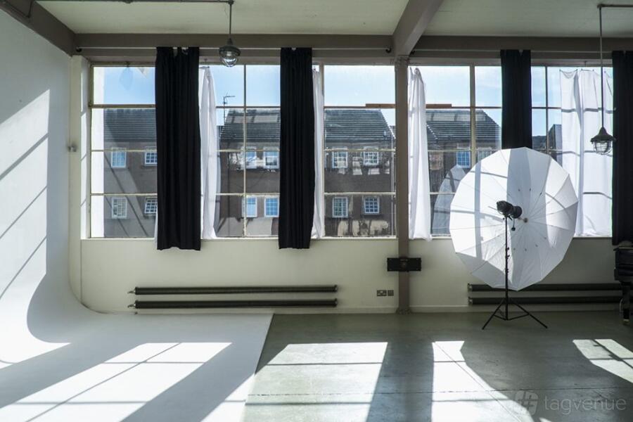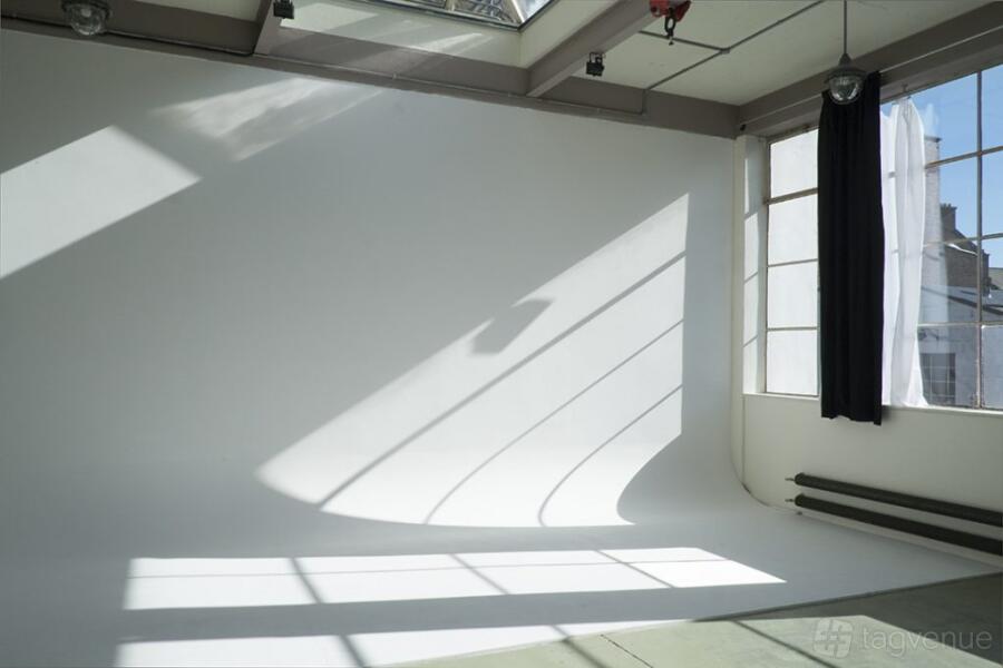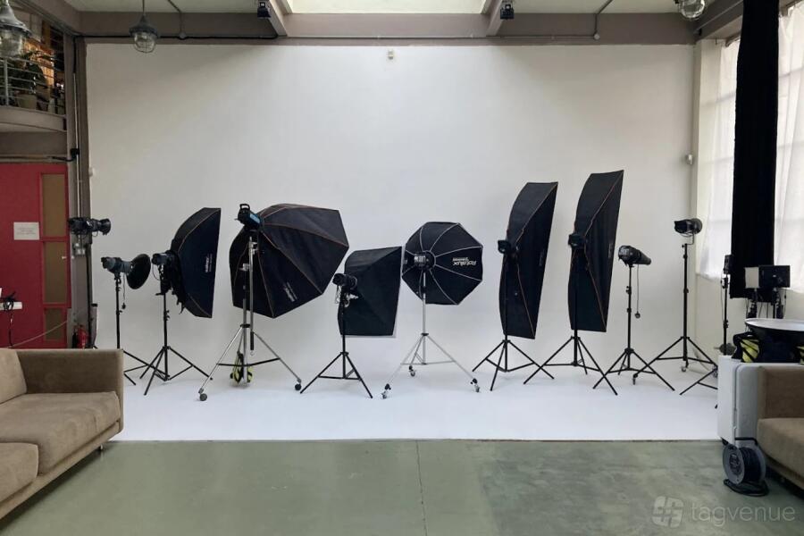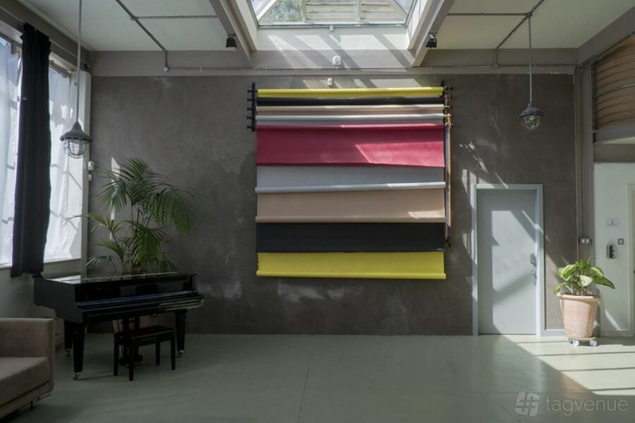 The venue is self-contained, providing a 32' studio, a skylight-lit shooting area, and blackout options. The building retains elements of its industrial past while offering a comfortable space for all-day use.