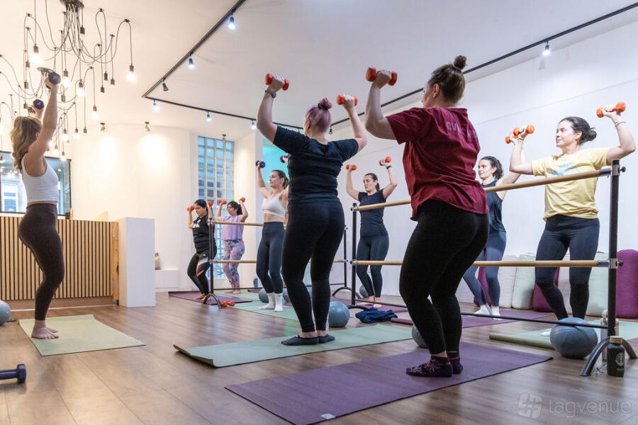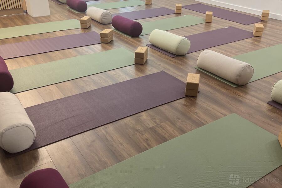 Yoga Studio – Fits 12 mats plus instructor; suited for yoga, pilates, or movement.