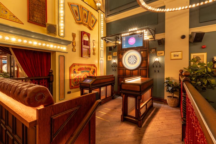 We seamlessly blend the heritage of darts with the excitement of a fairground, offering a thrilling combination of Social Darts, delectable food, delightful cocktails, and weekend DJs in our beautiful bar.