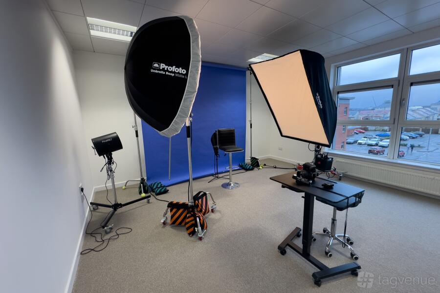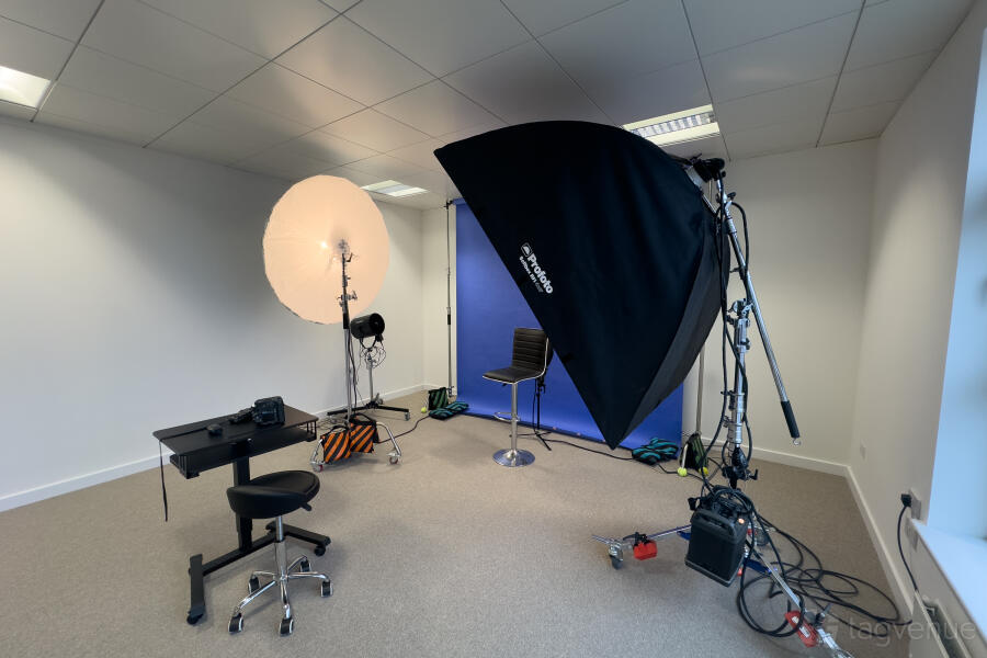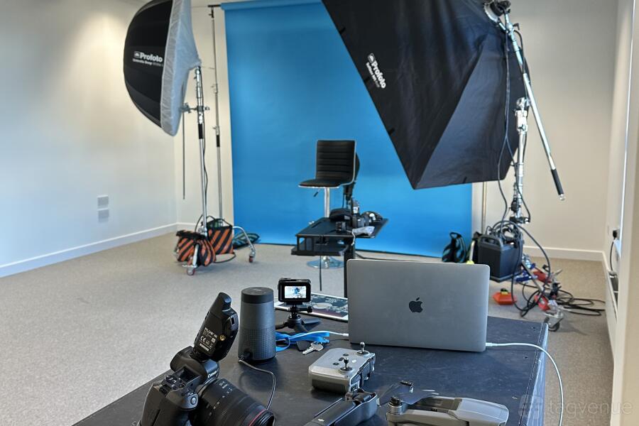 This premium shooting bay comes equipped with three top-quality lights (profoto). This bright and inviting studio measures 6x8 in size but boasts an open wall design that magnifies your shooting area by an additional 5 meters. With this unique feature, you can expand your creative vision and capture stunning visuals with ample room to maneuver.