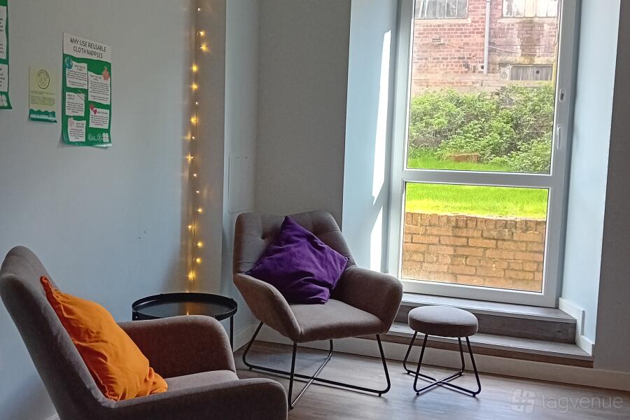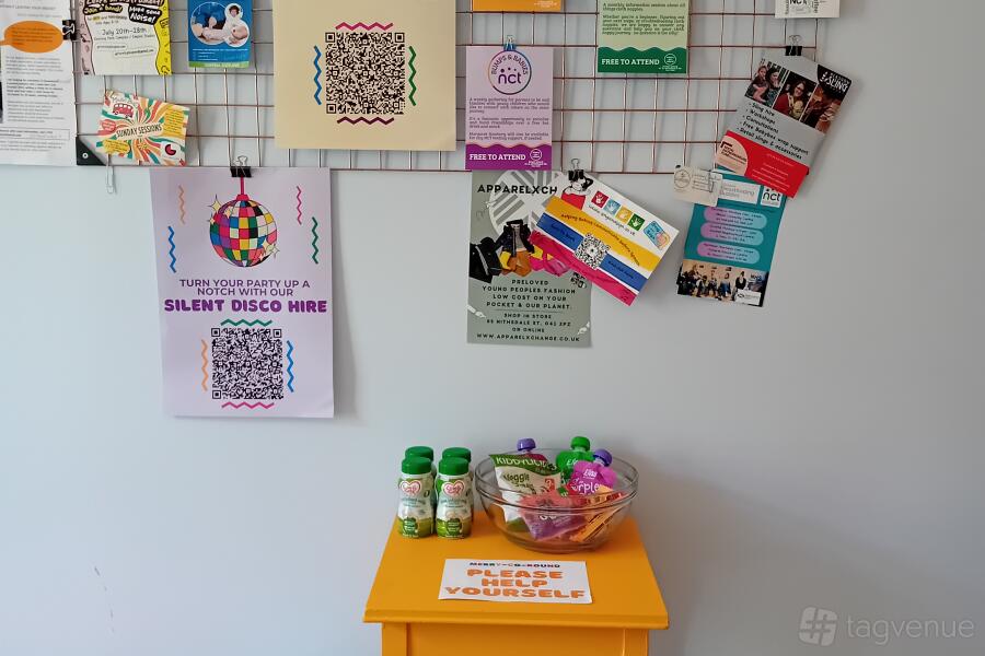 Our parenting space includes a small kitchen with complimentary refreshments, all the reusable cutlery needed for any event, and baby-changing facilities. Our main room showcases soft flooring and a small soft play area, lots of comfortable seating, tables and chairs, and a speaker and projector upon request. We also offer Silent Disco equipment which can be used within our space with a discount!
