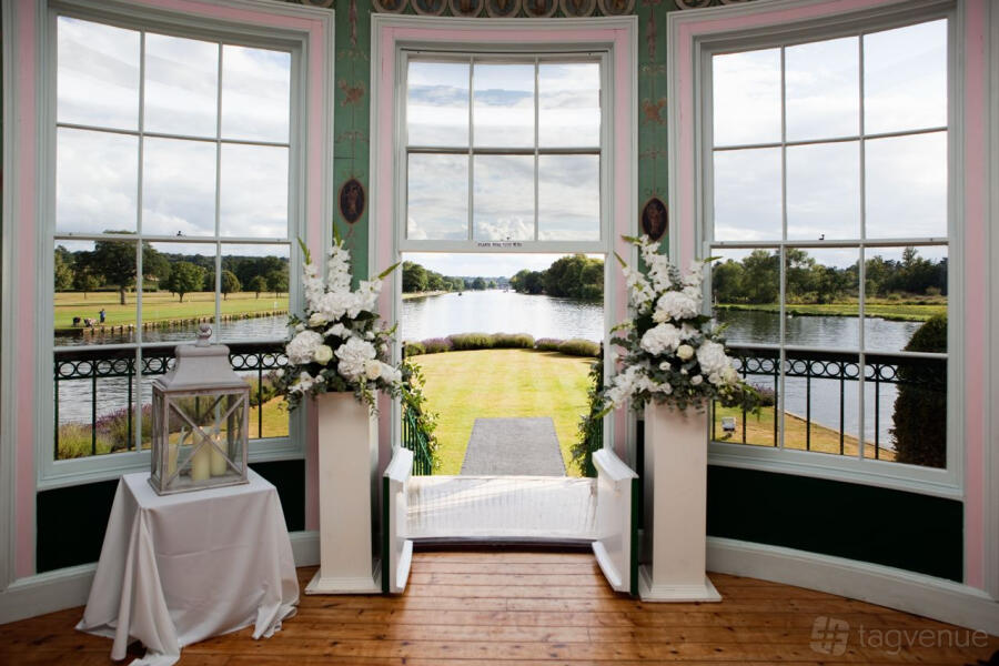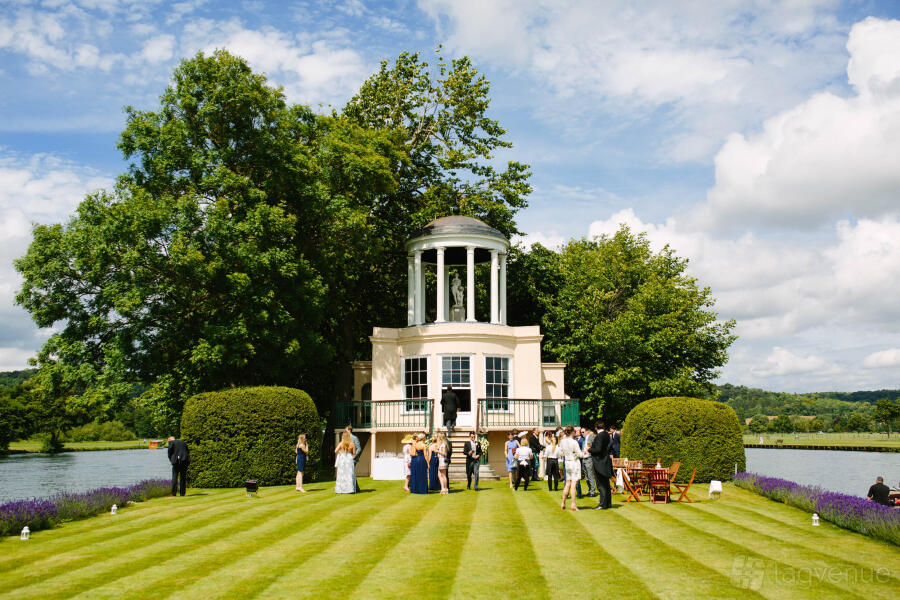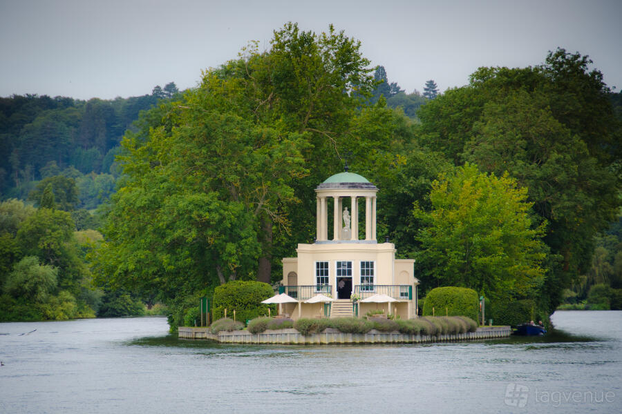 Temple Island, a romantic folly, is situated just outside the beautiful market town of Henley-on-Thames, on the borders of Buckinghamshire, Berkshire and Oxfordshire. Overlooked by a beautiful landscape of wooded hills and green fields, the venue offers plenty of tranquility and peace. Despite its rural setting, Temple Island is just 10 miles northeast of Reading and 25 miles southeast of Oxford.
