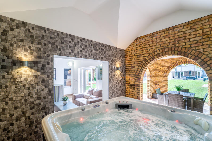 Outdoors, the heated swimming pool, hot tub, and pool house with bar set the scene for sociable days at home. There’s also an outdoor BBQ kitchen for relaxed meals with friends and family. With plenty of entertainment options both indoors and outdoors, Emerson Park Villa is perfect for memorable getaways if you are planning family time, a friend’s reunion, or a stylish London base with resort-style facilities.