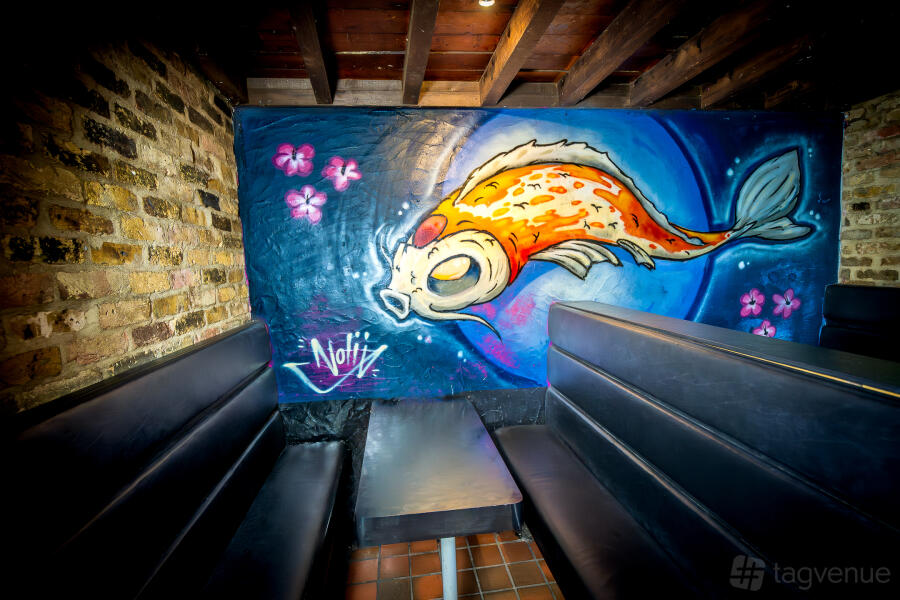 Equipped with a DJ booth, a fully stocked bar, an expansive dance floor with disco lights, and stylish graffiti-covered seating booths, Bacchus has all the essentials for an unforgettable celebration.