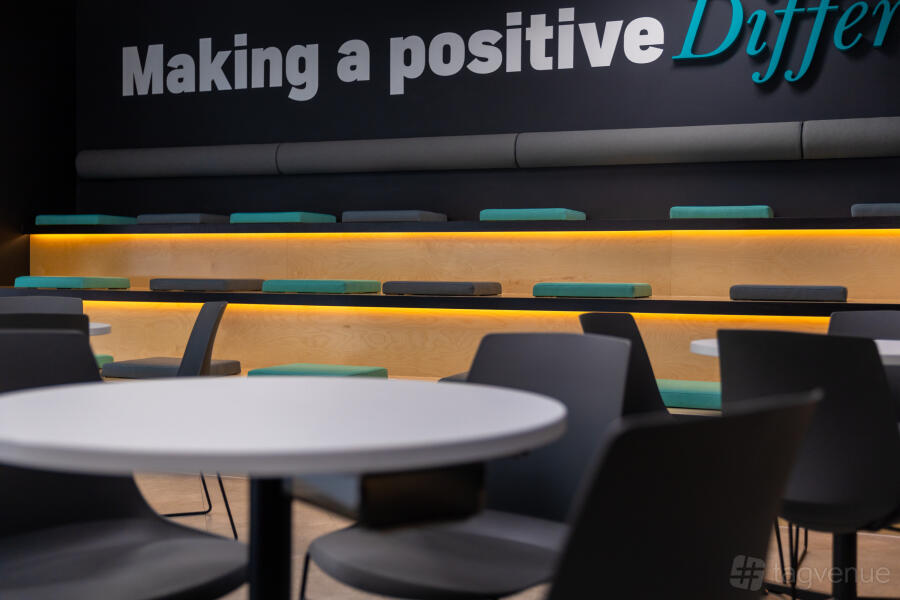 The space seats 40 people with a blend of cabaret and auditorium style seating. Equipped with high-speed Wi-Fi, a 100-inch screen, video & audio conferencing system.