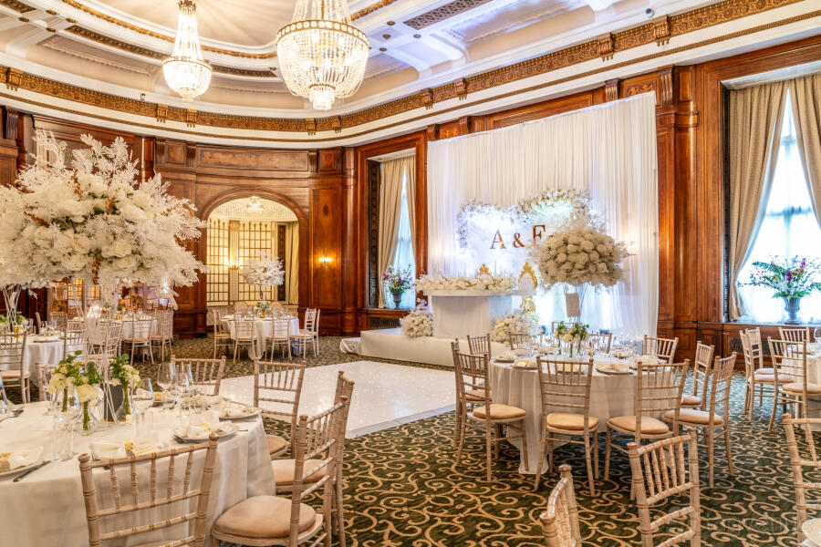 A popular suite for wedding hire, the Banqueting Hall boasts its own private entrance and Standing Bar. Guests can be received either via the Dome Entrance and get a refreshing drink at the Terrace Bar, or through the Grand Lounge where a Drinks Reception can be held at the Hypostyle Bar.