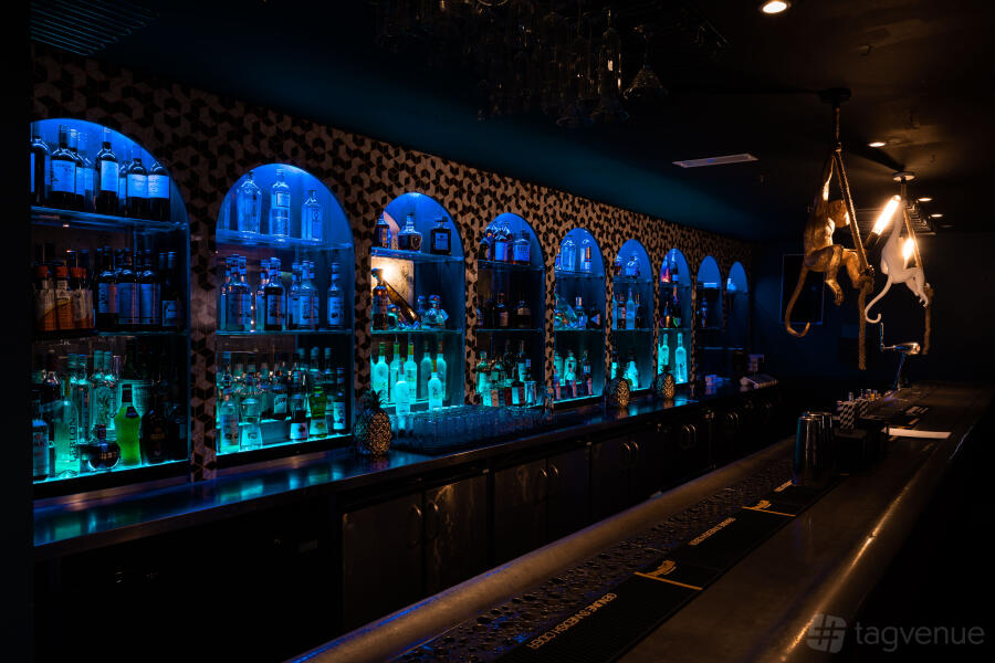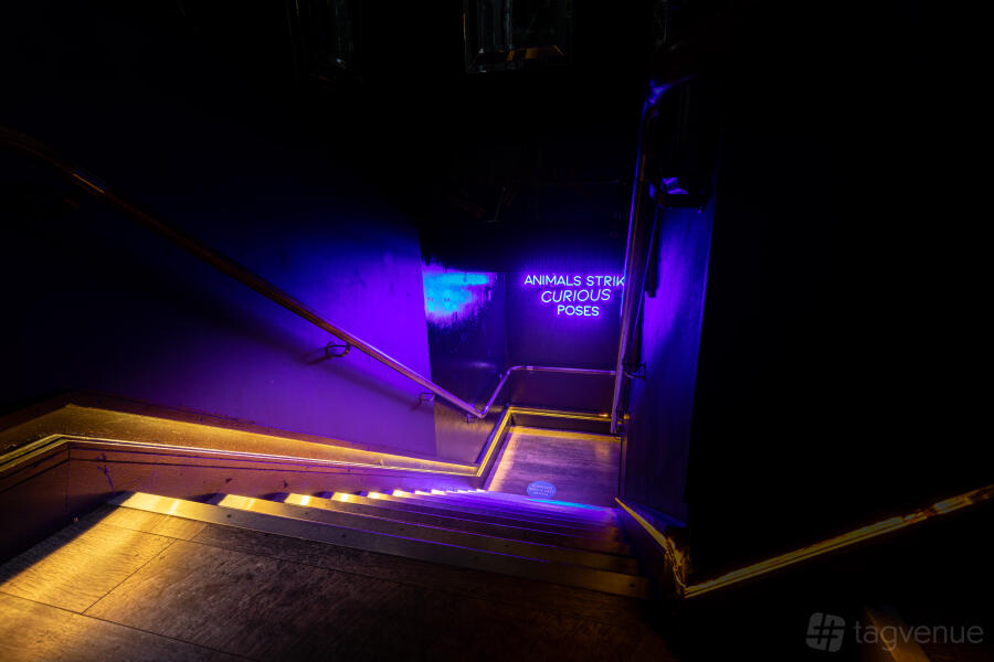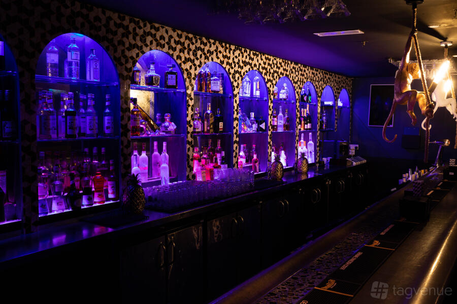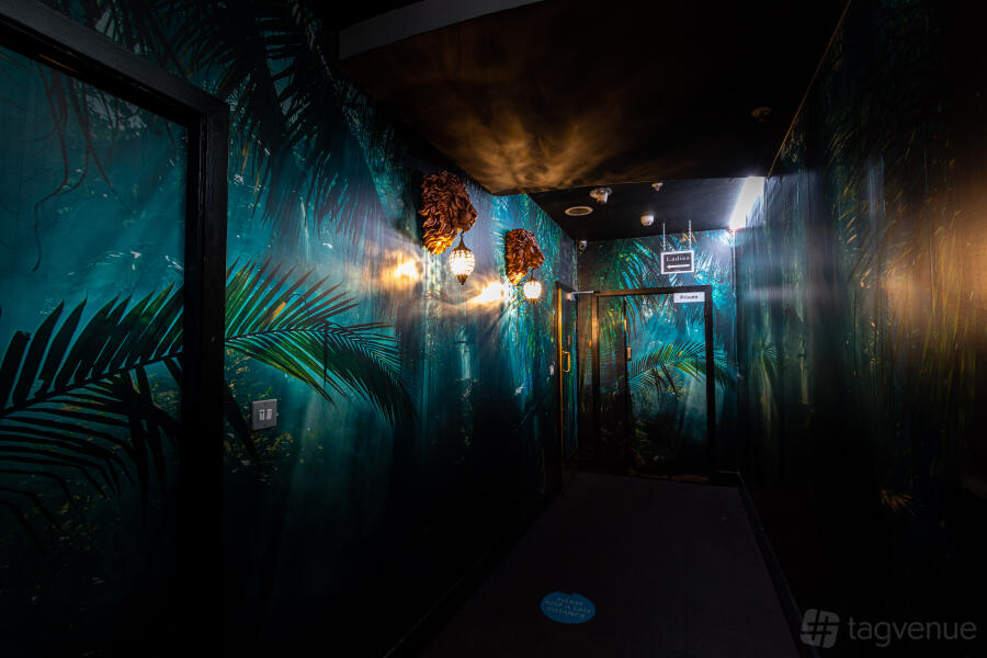 This room also has a small stage and raised DJ booth with a banquette seating all the way around the room. Both rooms boast their own private entrances, bars, cloakrooms, and toilets.