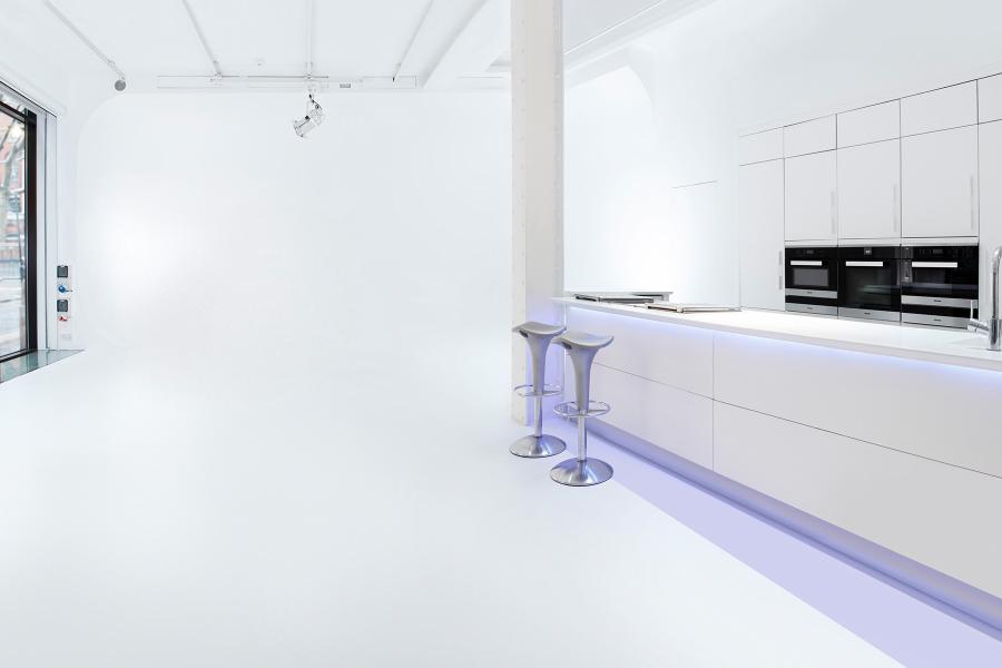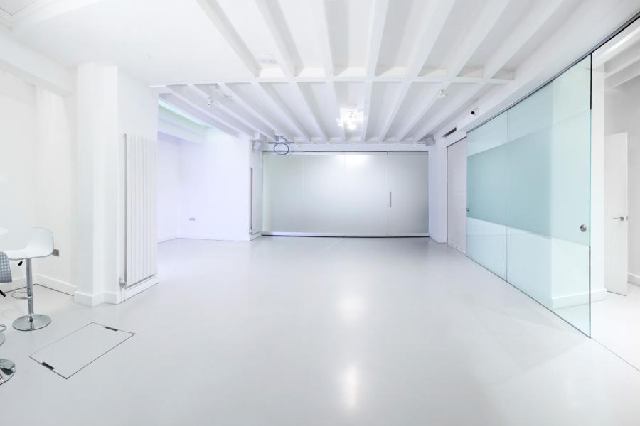 The ground floor space comes complete with a purpose-built luxury kitchen with a vast skylight and modern appliances throughout. The in-house AV equipment is ideal for presentations and live streaming, with endless possibilities for branding and theming. The main studio boasts a 10 ft. ceiling and large floor-to-ceiling windows offering plenty of natural light. The purpose built infinity cove is ideal for projecting images (moving or still) and/or green screen productions.