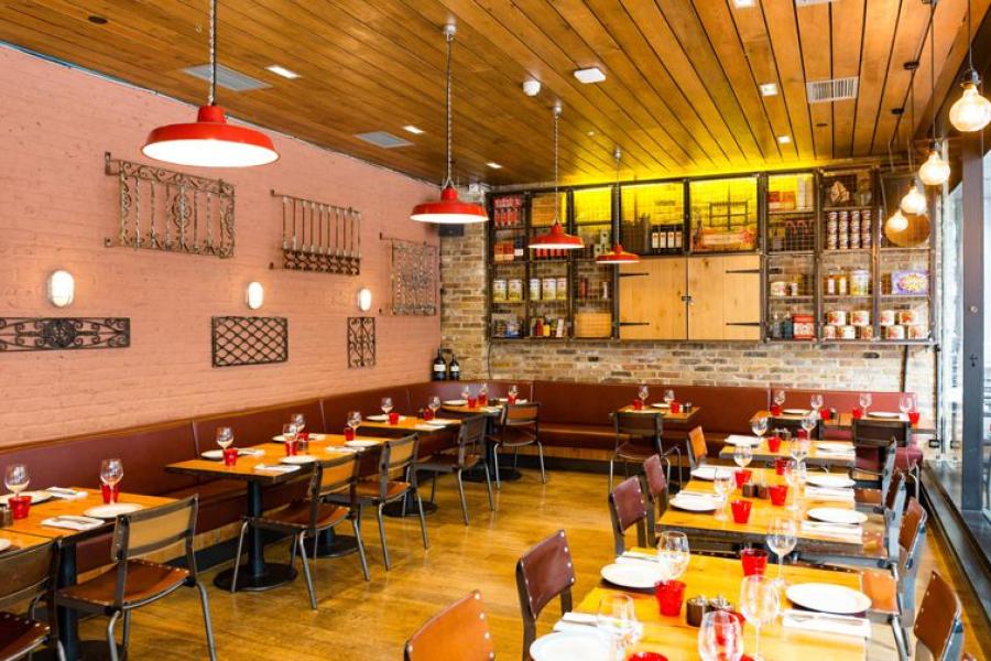 Vibrant colours and exposed bricks are complemented by cool things we’ve found on our travels, like the raggedy old wheelbarrow from a warehouse in Granada, the battered antique trunk from Andalusia, and the copper pots from a magical Sunday market in Madrid.