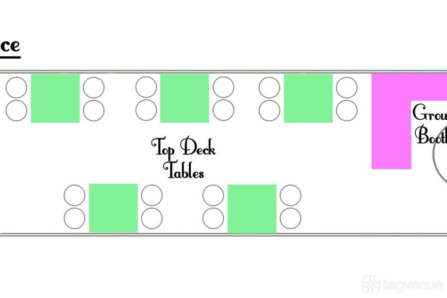 Our cabin space downstairs has a mixture of booths and smaller tables, ideal for intimate events or groups wanting their own sheltered little area away from it all. The seated capacity of this space is 24 but it can take up to 40 with some standing.