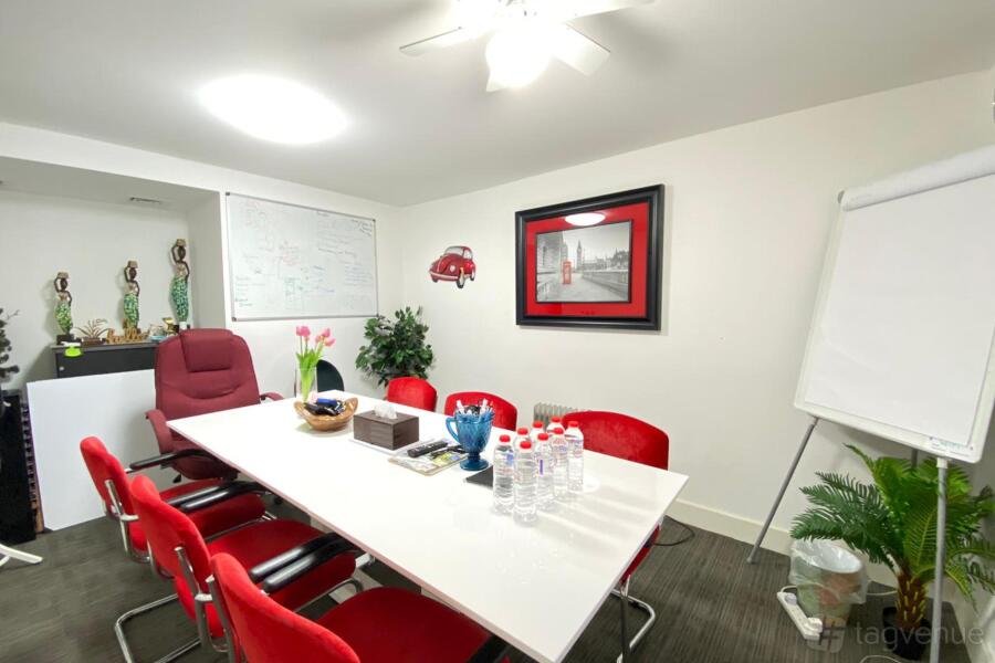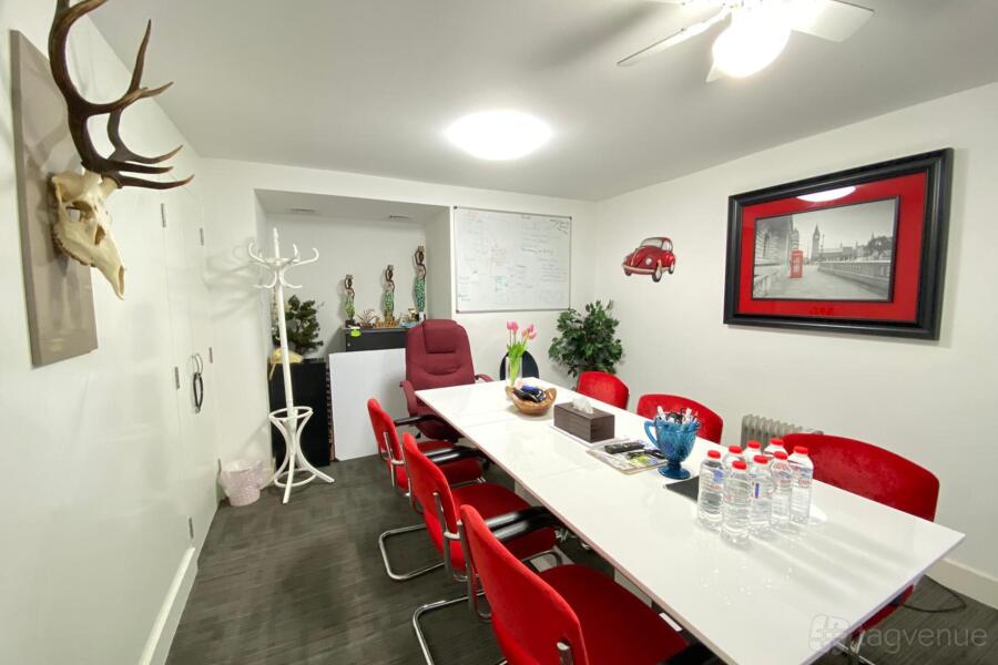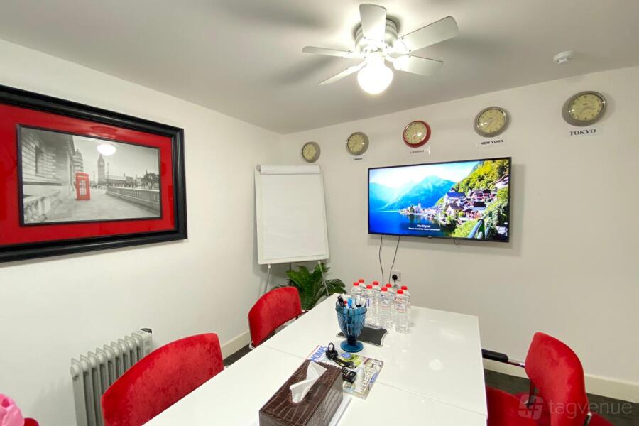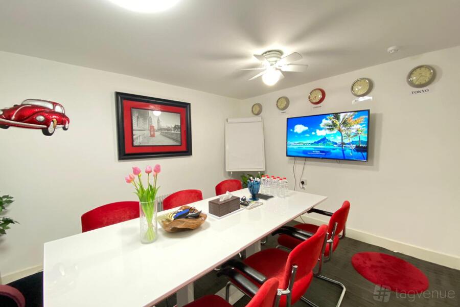 We provide a large conference table which can accommodate 8 people, a large 50 inch smart 4K TV, flip-chart, pens, paper, projector, whiteboard, high speed WIFI, complimentary drinks (hot/cold), extra heating. There is a small kitchen for you to use and also a toilet.