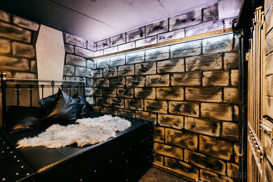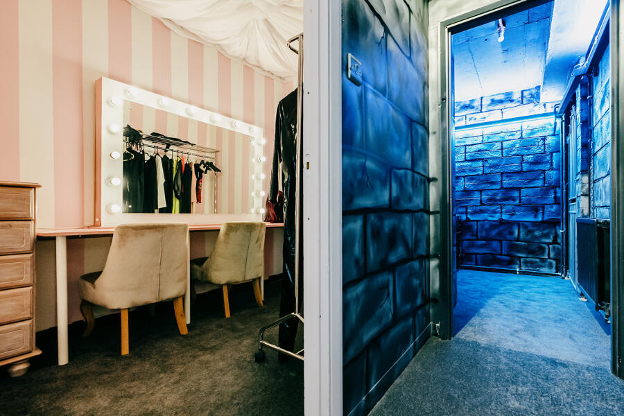 There is a small street-level reception area and a cloakroom at the bottom of the stairs. The large basement contains the 5 themed studios, single WC, kitchenette, and walk-in shower.