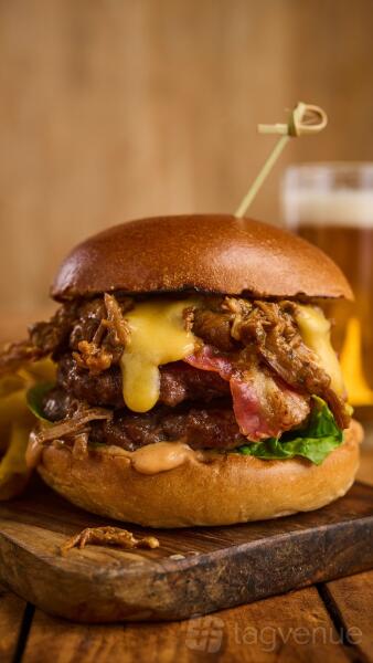 Then we pile ‘em high with tasty add-ons, including beer braised onions, burger sauce and double cheese.