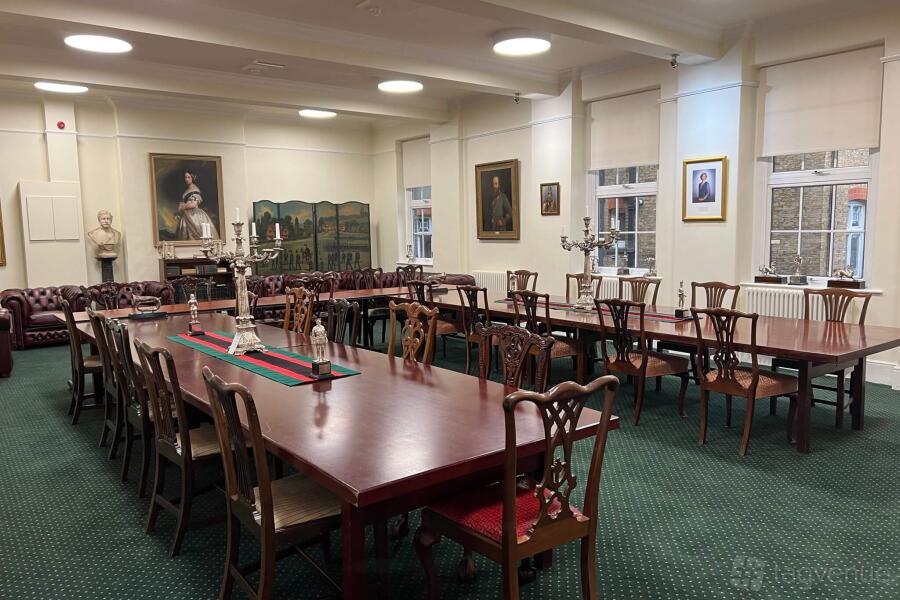 The Drill Hall conveniently includes a large vehicle doorway opening directly into the quiet mews, allowing for smooth access into the building’s main space. This space accommodates up to 200 people for a reception and 80 people for a seated event.