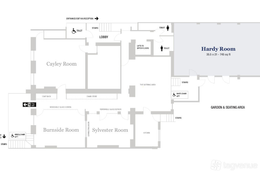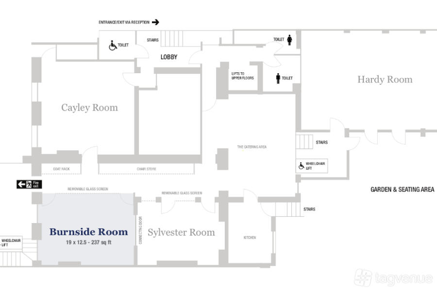 A dedicated catering area is also available providing a perfect space for refreshment breaks and lunch. The venue’s central location offers excellent transport links.