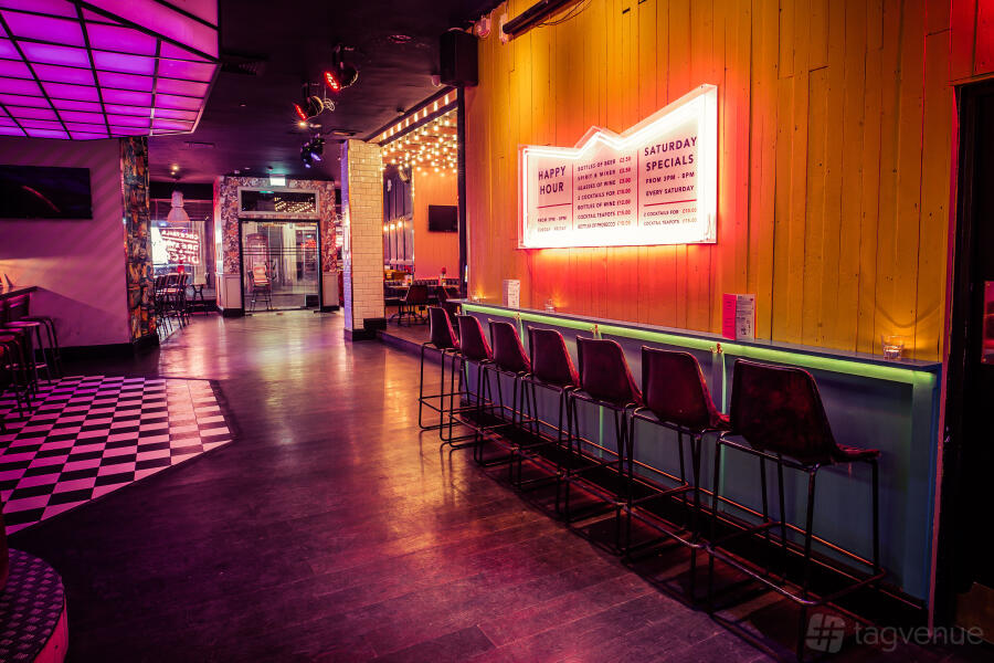Aside from the happiest happy hour in London, Simmons is known for their classic tune selection and banging DJs and Oxford Street will certainly be no exception. The bar has a raised DJ booth and a dance floor surrounded by Waltzer styled seating booths, blaring neon lights and a larger than life fairground feel.