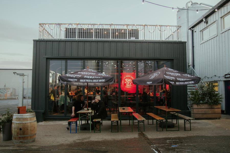 Brewery by day and music venue by night. Signature Brew hosts a versatile space that includes an outdoor seating area, yard pub and an indoor multipurpose event space with a stage and private bar.