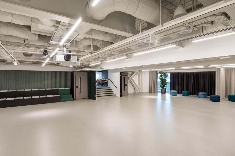 Downstairs, there’s a large and flexible event space with seating for up to 220 that can be dressed or configured to suit any event – or divided into two workshop studios, perfect for training or presentations. And optional catering, by request.