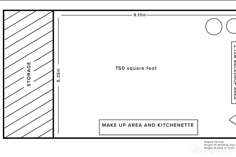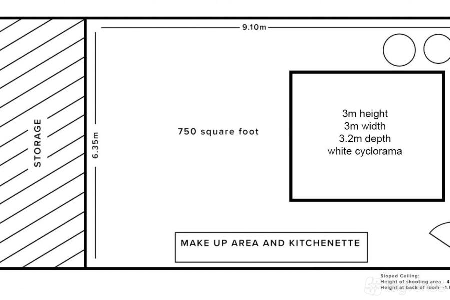 The studio has a small kitchenette, seating area, WCs and showers on site, as well as lift access.