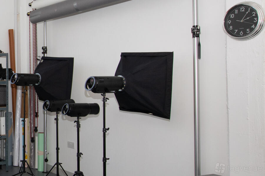 • 2 x Bowens 1000W corded flash heads with square soft box, reflectors or