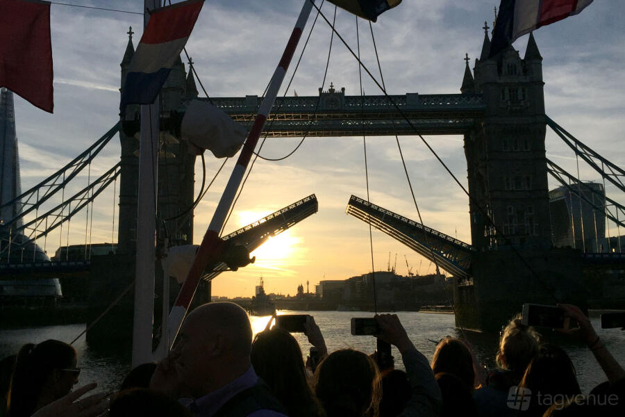 Sail east past the Tower of London and your guests will marvel as Tower Bridge is raised for the Dixie Queen to pass, momentarily bringing London’s busy traffic to a halt. Cruise on past Canary Wharf and historic Greenwich, round the O2 peninsula and through the Thames Barrier.