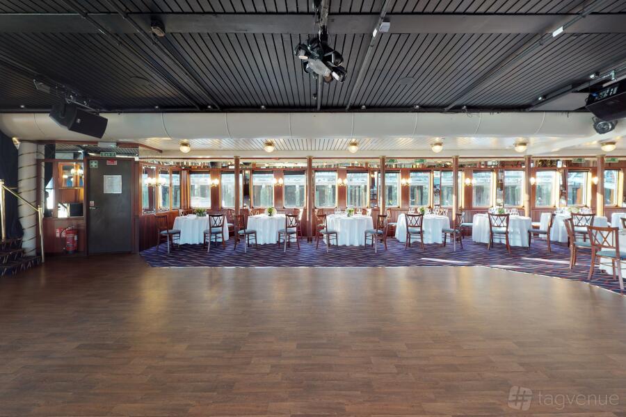 A large versatile event venue, the Dixie Queen can accommodate up to 620 people over her two decks. On board her proportions set the atmosphere of a ship rather than a large river boat. The flexible layout allows for a wide variety of events to be accommodated.