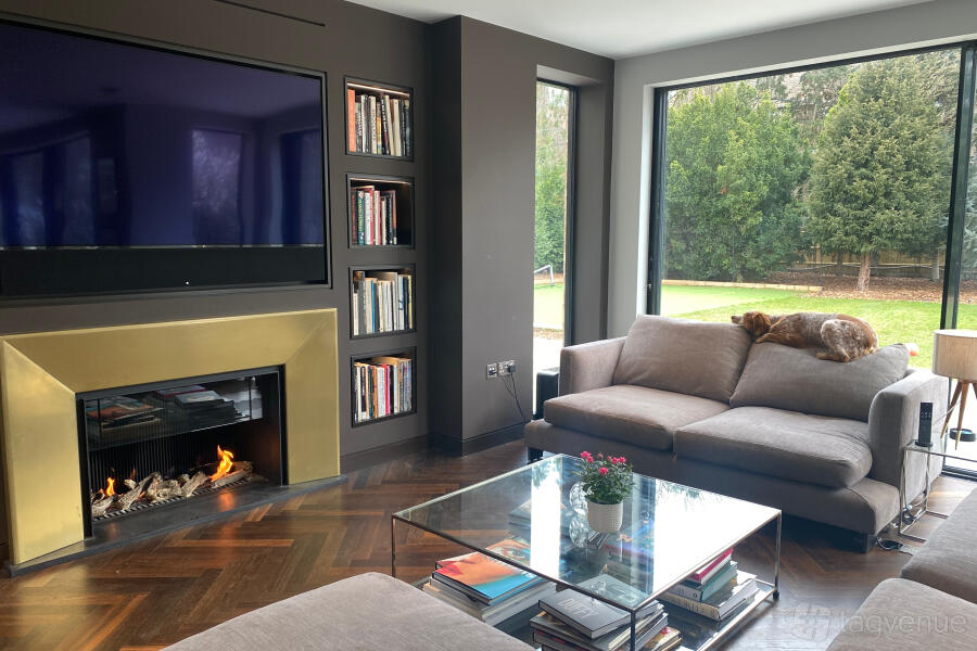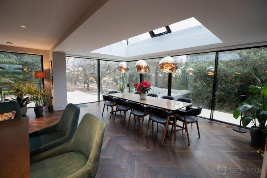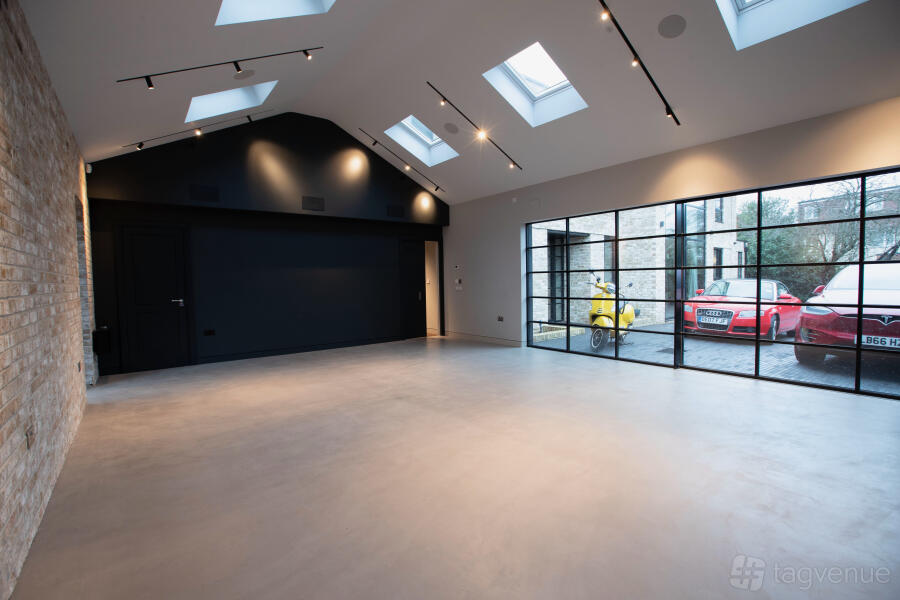 Large sliding windows, span most of the garden-facing side of the house, so that light spills in no matter what the weather and allows nature to be its backdrop. We have a shooting Studio which opens up to the driveway on one level, perfect for off loading kit.